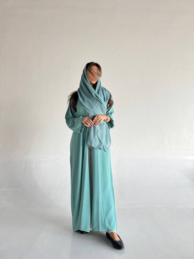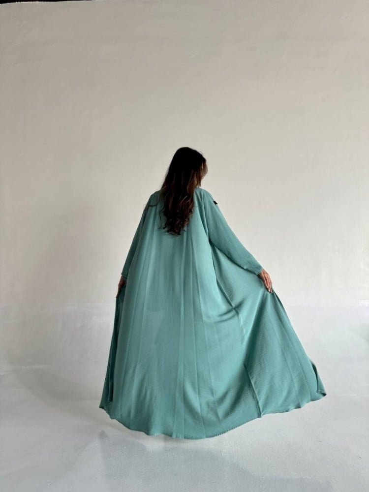 - تأتي العباية بلون التيفاني الرائع، الذي يضفي إشراقة خاصة ويبرز جمال كل من يرتديها هذا اللون الفريد يجعلها مناسبة لمختلف الإطلالات.