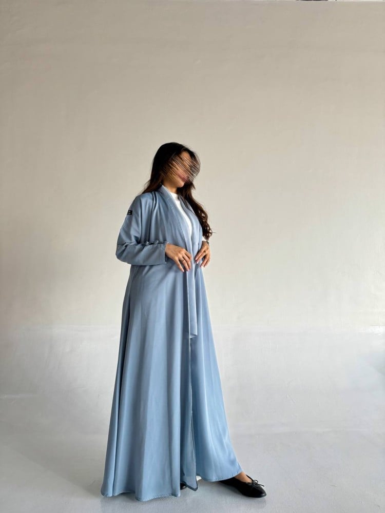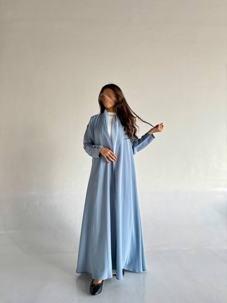 • تتميز العباية الكلوش باللون السماوي الذي يعكس الرقي والبساطة في آن واحد حيث يضيف الشعور بالراحة والأناقة لذا يجعله اختيارًا مثاليًا لكل من تحب إبراز ذوقها الرفيع.
